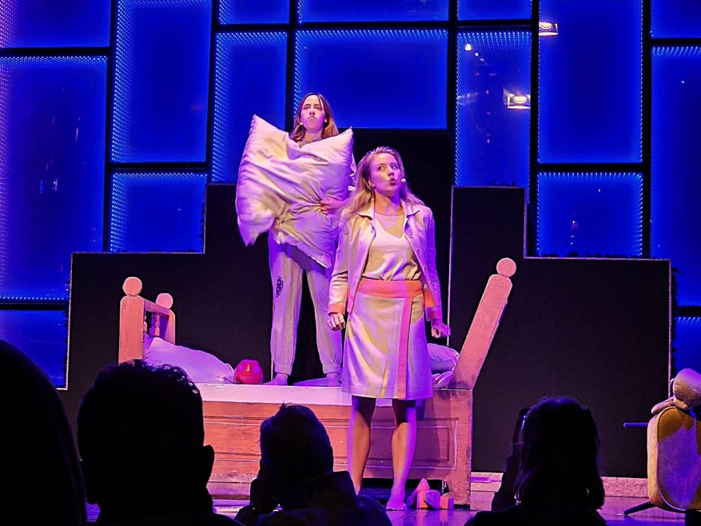 In der Bühnenproduktion schlüpfen sechs Darsteller in 15 verschiedene Rollen, die von zehn Liedern begleitet werden.