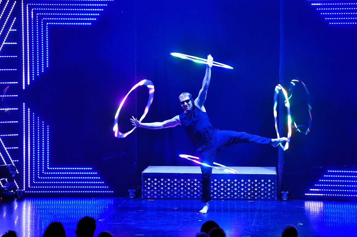 Daniel Sullivan bringt eine ganz eigene Farbe in die Show: Mit seinem Hula Hoop Act – teils mit UV-Licht – und explosivem Irish Dance verbindet er Moderne, Technik und Tradition auf spektakuläre Weise.