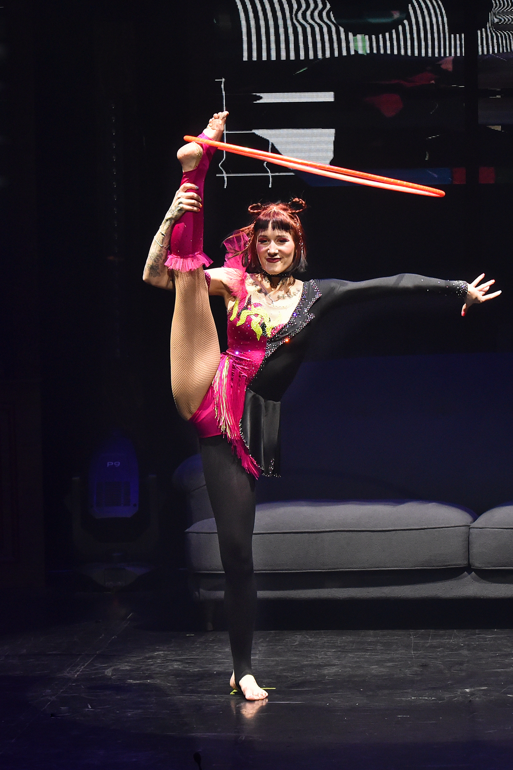 Vom Technikbereich auf die Bühne: Jenna Böhmann begeistert mit Energie und Ausdruck. Ihre Hula-Hoop-Performance verbindet Elemente der rhythmischen Sportgymnastik mit moderner Artistik und hoher Dynamik.